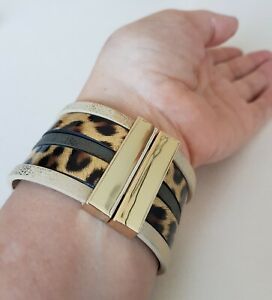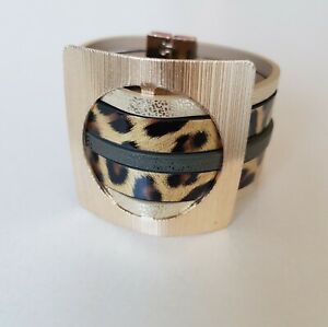 sandali donna leopardati in cuoio braccialetto bracciale fibbia in oro, vintage, chiusura in oro magneteサンダルカフブレスレットバックルヴィンテージゴールドマグネット※注意※NYからの配送になりますので2週間前後お時間をいただきます。