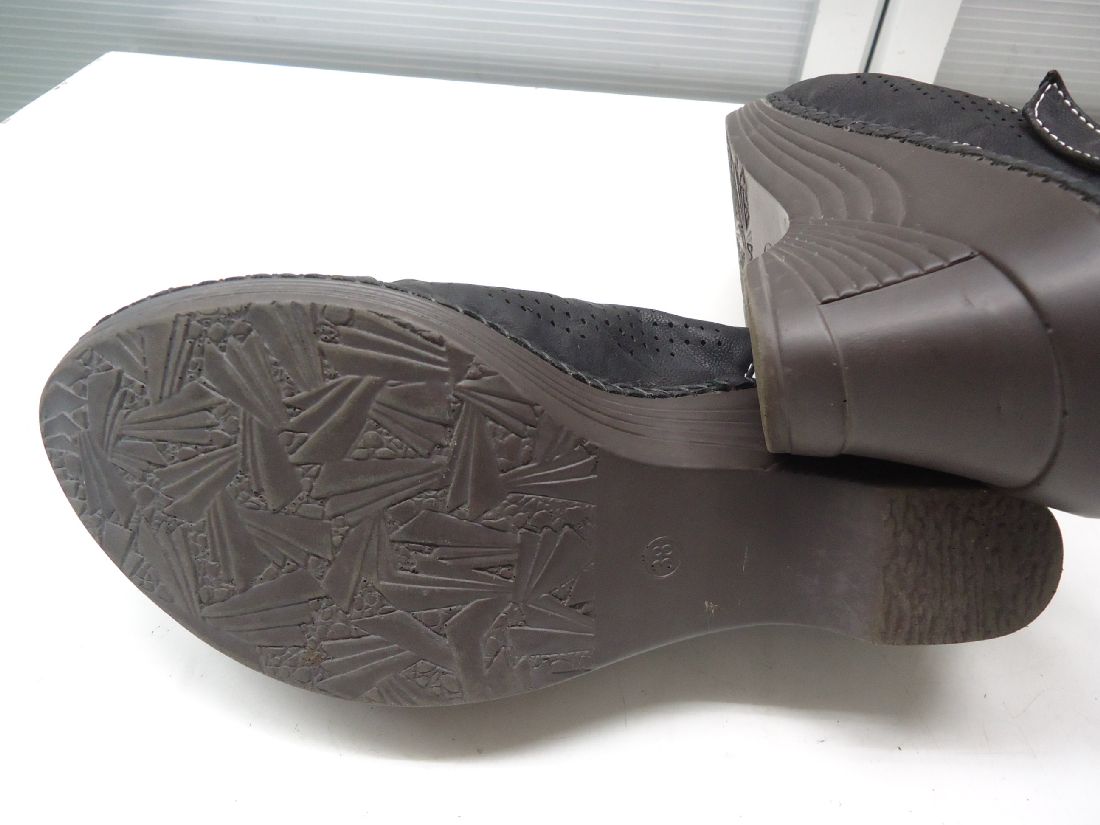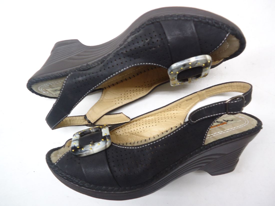 らくちんしすたー■38(24.5cm程度)■レザー オープントゥ バックストラップ ウェッジサンダル 808■BLACK/ブラック/黒色■超軽量◎大きなバックルベルトデザインがポイント♪【中古】