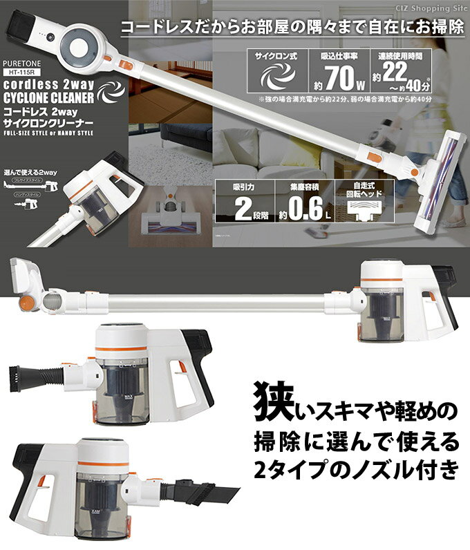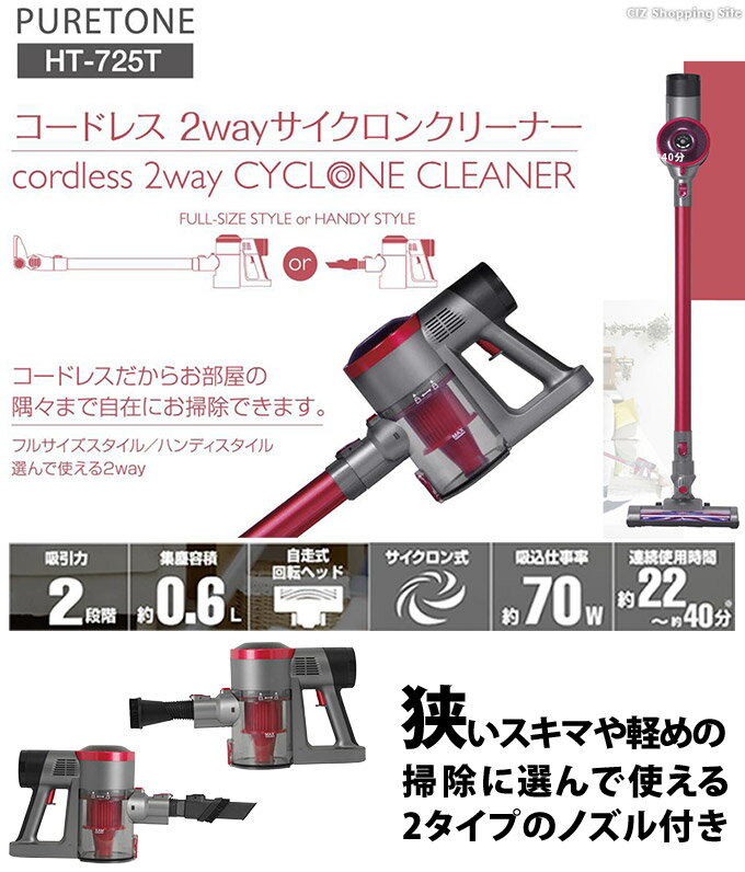 ヒロ・コーポレーション 掃除機 PURETONE コードレス2wayサイクロンクリーナー HT-725T コードレス サイクロン ハンディ クリーナー