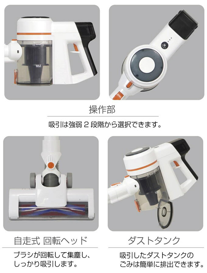掃除機 サイクロン ハンディクリーナー コードレス HT-115R ホワイト 自走式回転ヘッド 紙パック不要 充電式 一人暮らし スティッククリーナー 新生活 家電