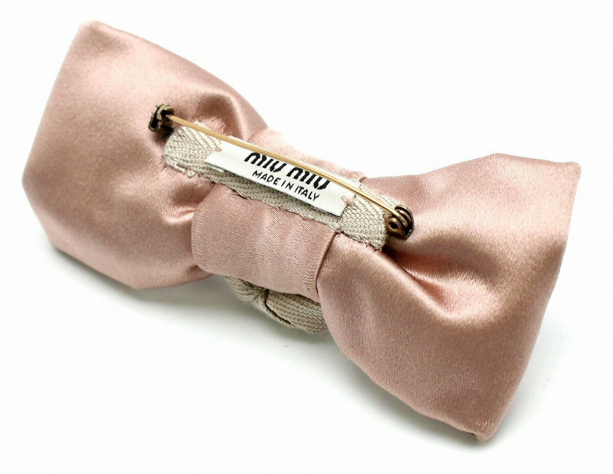 ピンクのサテンリボンに、ドロップのようなビジュークリスタルがキラキラで宝石のように美しいmiu miuブローチです。